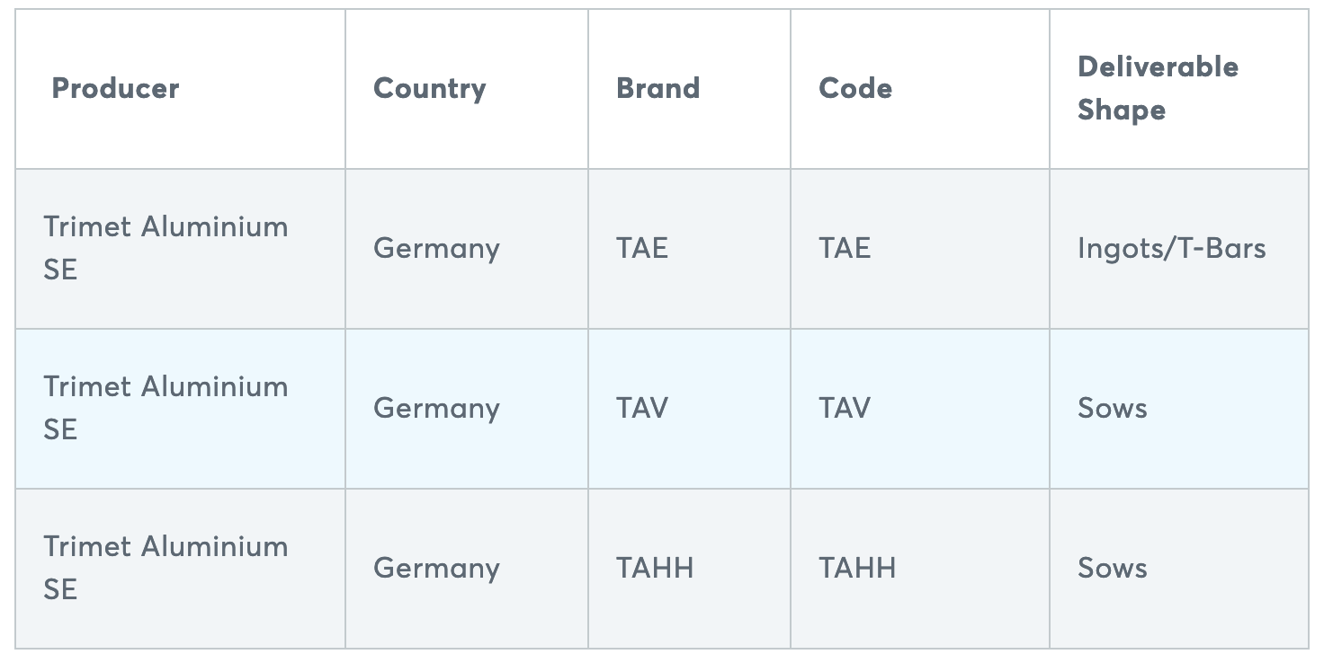 CME list ‘Trimet Aluminium SE’ Aluminum Brands